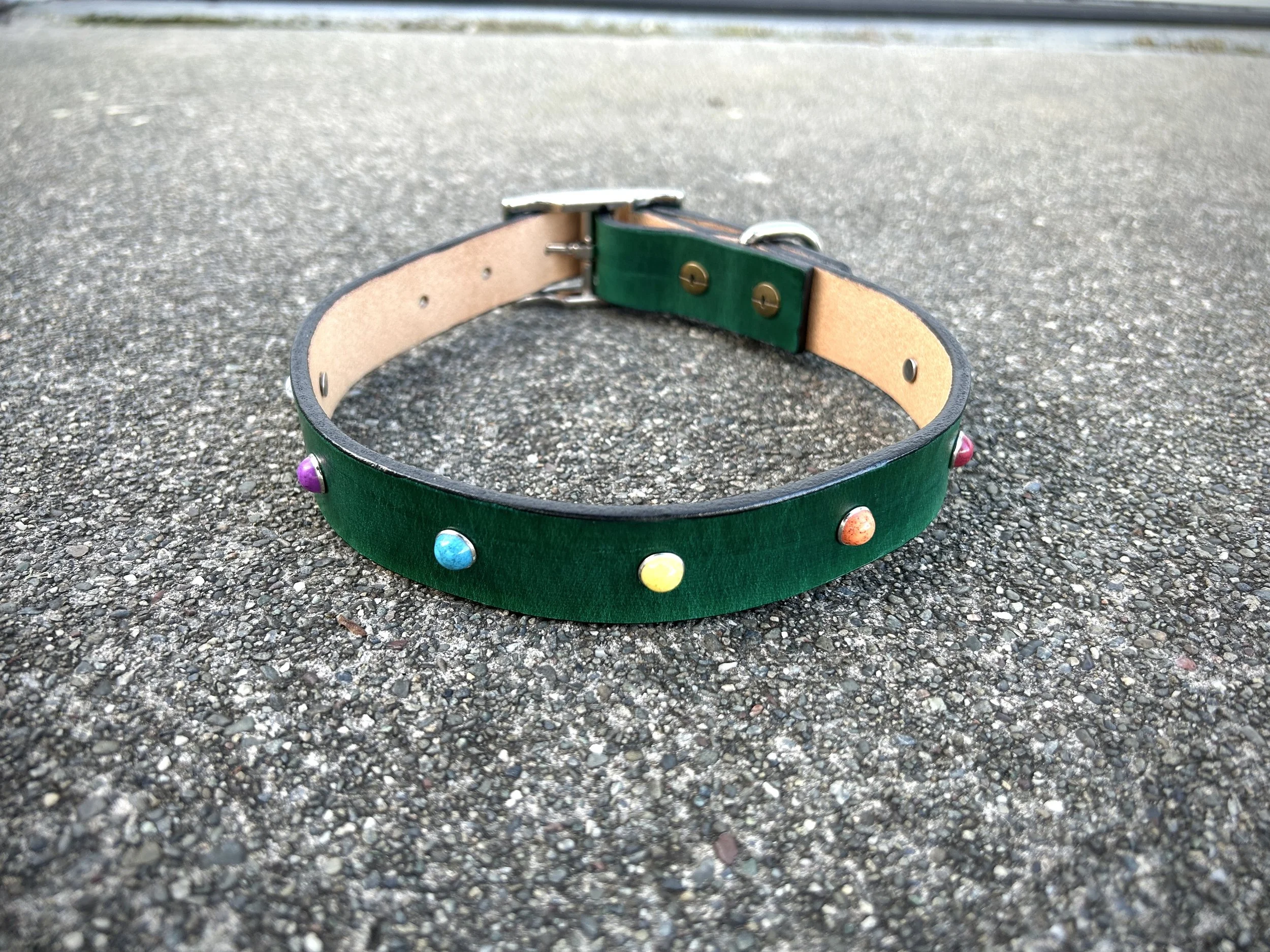 Standard Collars are made from 7oz-8oz full grain cow hide and feature an adjustable five-hole buckle set fastened with Chicago screws. Multiple sizes and colors available.
